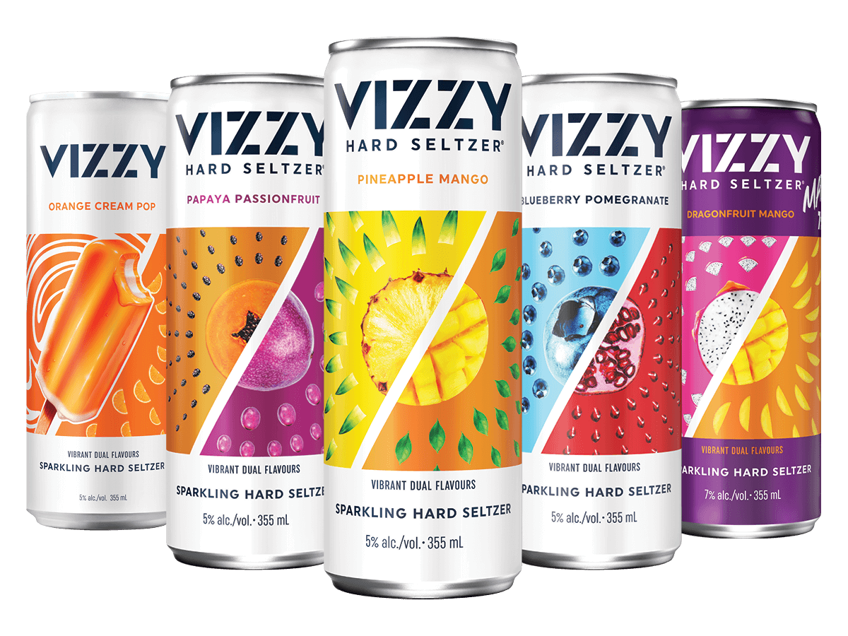 Flavour for your vibe GET VIZZY VIZZY VARIETY PACK Vizzy Cream Pop pack VIZZY SIGNATURE PACK Vizzy max pack A Little Bit About Vizzy vibrant dual-fruit flavours 5%ABV* 100 CALORIES* *PER 355 ML